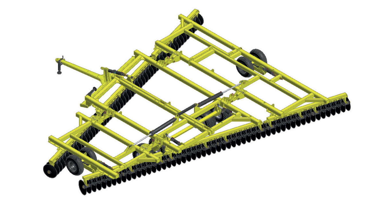 A grade GNACR realiza com excelente desempenho e rendimento, a gradagem de complementação do ciclo de preparo de solo, destorroando-o uniformemente e deixando-o em condições de receber em seguida as semeadeiras, facilitando a aplicação de herbicidas e, posteriormente, a colheita mecanizada. Possui laterais basculantes e conjuntos de rodas com 6 pneus 11L15 acionados hidraulicamente da própria cabine do trator, facilitando o reboque do implemento por estradas estreitas, passagem por pontes, porteiras, etc. O basculamento silmultâneo das laterais é feito por cilindros hidráulicos alojados no quadro central. Durante as operações de trabalho as laterais articulam-se livremente, adaptandose aos vários tipos de terrenos, inclusive nas encostas de terraços, destorroando-os.